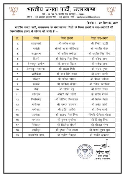 उत्तराखंड : सत्येंद्र राणा को नई जिम्मेदारी, बने देहरादून ग्रामीण भाजपा के जिला प्रभारी