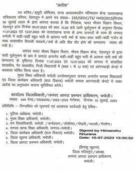 मौसम अलर्टः दो दिनों तक जिले के सभी विद्यालयों में अवकाश की घोषणा