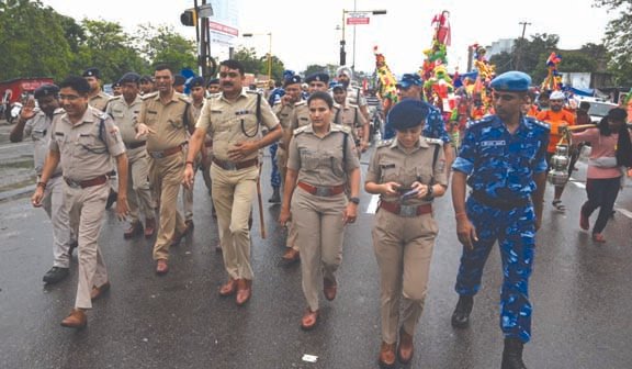 एसएसपी ने किया झमाझम बारिश के बीच कांवड़ मेले का निरीक्षण व पैदल मार्च