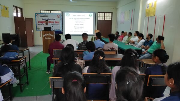 रिखणीखाल : भारत सिंह रावत राजकीय महाविद्यालय रिखणीखाल पौड़ी गढ़वाल में महाविद्यालय के देवभूमि उद्यमिता योजना के अंतर्गत एक जागरूकता कार्यक्रम का आयोजन किया गया । कार्यक्रम का शुभारंभ महाविद्यालय के प्राचार्य प्रोफेसर मनोज उप्रेती द्वारा किया गया । साथ ही प्राचार्य प्रोफेसर मनोज उप्रेती राज्य सरकार की महत्वाकांक्षी देवभूमि उद्यमिता योजना को पहाड़ के युवाओं के लिये बहुत लाभकारी बताया तथा छात्रों को इस प्रशिक्षण कार्यक्रम का लाभ उठाने हुआ उधमिता से जुड़ने का आवाहन किया कार्यक्रम का संचालन महाविद्यालय के देव भूमि को देवता केंद्र के नोडल डॉक्टर विपिन पवार द्वारा किया गया साथ ही उन्होंने देव भूमि उद्यमिता के विस्तृत जानकारी देते हुए बताया कि यह योजना उत्तराखंड के युवाओं को उद्यमिता अपनाने के लिए प्रोत्साहित करेगी ।