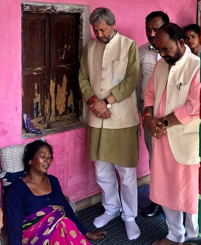 गोपेश्वर (चमोली)। चमोली हादसे के पीड़ित परिवारों को सांत्वना देने और दुःख की इस घड़ी में उनके परिवारजनों को ढांढस बांधने के लिए उत्तराखंड के पूर्व सीएम और वर्तमान गढ़वाल सांसद तीरथ सिंह रावत रविवार को गोपेश्वर पहुंचे और पाडुली गांव पहुंच कर घटना में हतात सोबत सिंह और उनके पुत्र विपिन के परिजनों से मिले। उन्होंने उनके परिजनों को ढांढस देते हुए सरकार की ओर से हर संभव मदद का भरोसा दिलाया।