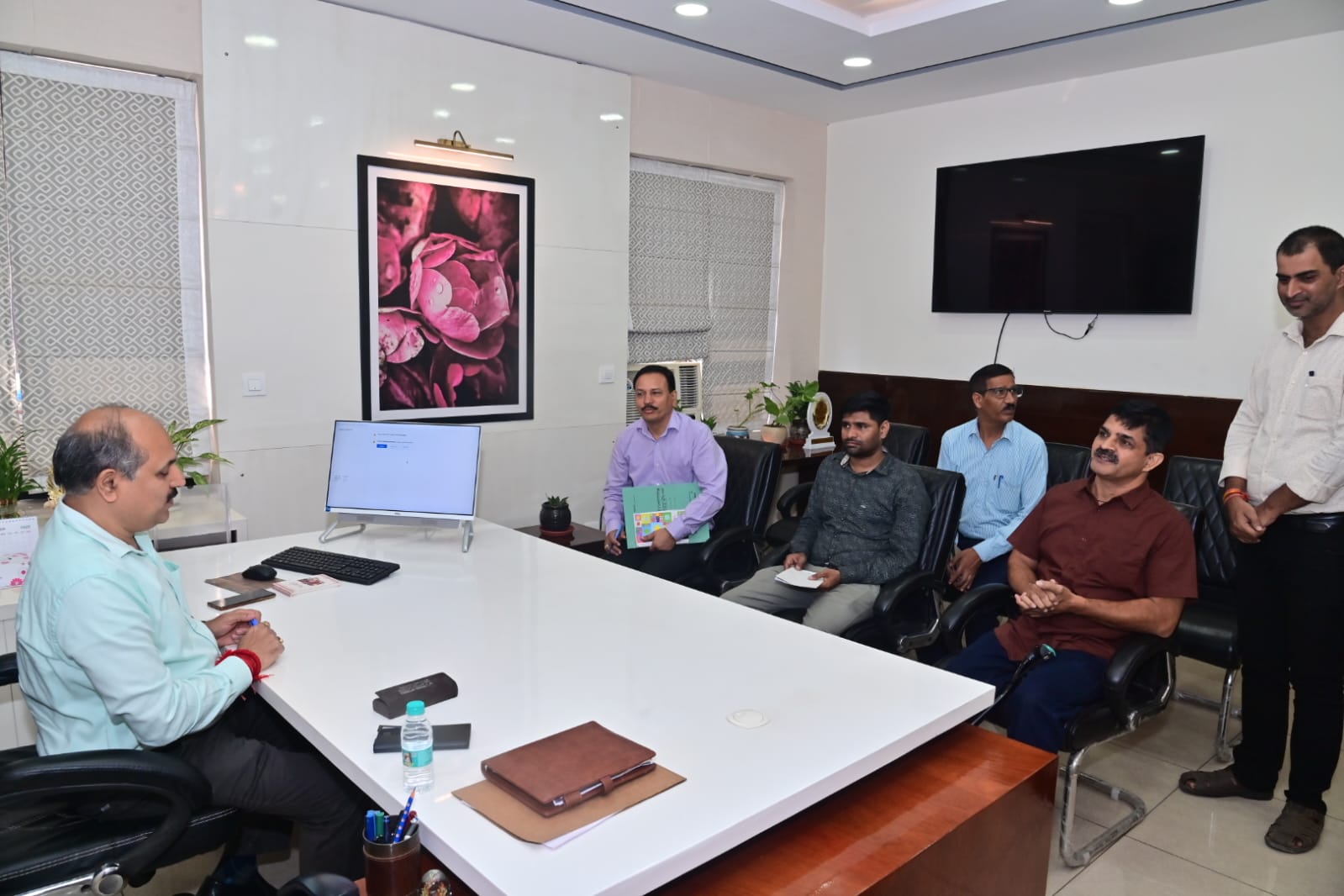 हरिद्वार : उत्तराखण्ड शासन के आदेशों के क्रम मे डॉ. ललित नारायण मिश्र ने विकास भवन स्थित कार्यालय पहुंच कर मुख्य विकास अधिकारी के रूप में कार्यभार ग्रहण किया। इस अवसर पर संबंधित पटल के अधिकारियों एवं कर्मचारियों के साथ बैठक की। उन्होंने सभी अधिकारियों एवं कर्मचारियों को मार्गदर्शित करते हुए कहा कि अपना कार्य पूरी निष्ठा और संवेदनशीलता के साथ करें । उन्होंने कहा कि जो भी आमजन मानस अपनी समस्याएं लेकर विकास भवन में पहुंचते है तो उनकी समस्याओं का निराकरण प्राथमिकता से किया जाए।