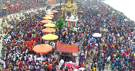 भगवामय हुई तीर्थनगरी, उमड़ा कांवडि़यों का सैलाब