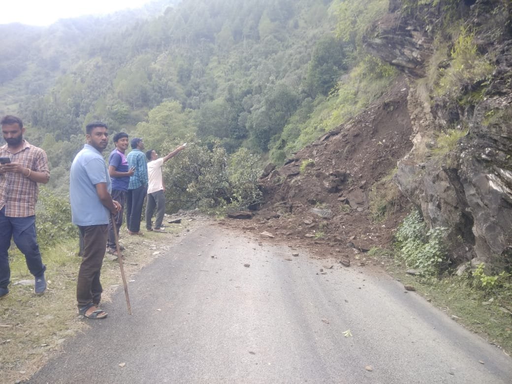 पोखरी-हापला मोटर मार्ग भिकोनाधार के पास पहाड़ी से आये मलवे से हुआ अवरूद्ध
