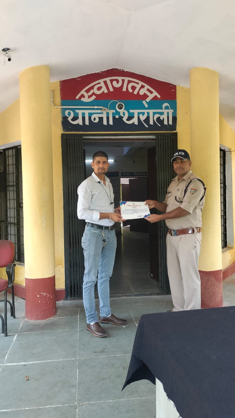 *अच्छी पहल:-सड़क दुर्धटनाओ में त्वरित मदद के लिए थाना पुलिस थराली ने गिरीश चंदोला को किया पुरुस्कृत*