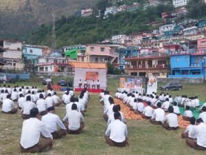 गोपेश्वर। राष्ट्रीय स्वयं सेवक संघ चमोली द्वारा संघ के 100 वर्ष पूरे होने पर गोपेश्वर नगर में संघ शताब्दी वर्ष कार्यक्रम आयोजित किया गया। इस दौरान आयोजित पथ संचलन में काफी संख्या में स्वयं सेवकों ने प्रतिभाग किया। शेरा मैदान में आयोजित कार्यक्रम में राष्ट्रीय स्वयं सेवक संघ के प्रांत कार्यवाह श्रीमान दिनेश सेमवाल ने मां भारती के चित्र पर पुष्पार्पण कर शस्त्र पूजा की। उन्होंने अपने वक्तव्य में कहा 1925 में राष्ट्रीय स्वयं सेवक संघ की स्थापन हुई थी। आज 2025 में संघ को 100 वर्ष पूर्ण हो गए हैं,जिसे संघ शताब्दी वर्ष रूप में माना रहा है। संघ विजयदशमी को हर वर्ष अपना स्थापना दिवस मानता है , इसी परिपेक्ष में गोपेश्वर के स्वयं सेवकों द्वारा अपने शताब्दी वर्ष के कार्यक्रम मनाया गया है।इस शताब्दी वर्ष में संघ द्वारा बस्ती बस्ती गांव गांव समरसता ,कुटुंब प्रबोधन,पर्यावरण, स्वदेशी, नागरिक कर्त्तव्य पंच परिवर्तन के कार्य किए जाएंगे तथा इन लक्ष्यों की प्राप्ति के लिए प्रत्येक स्वयं सेवकों को आज ही से लक्ष्य प्राप्ति के लिए तैयार रहना चाहिए।
