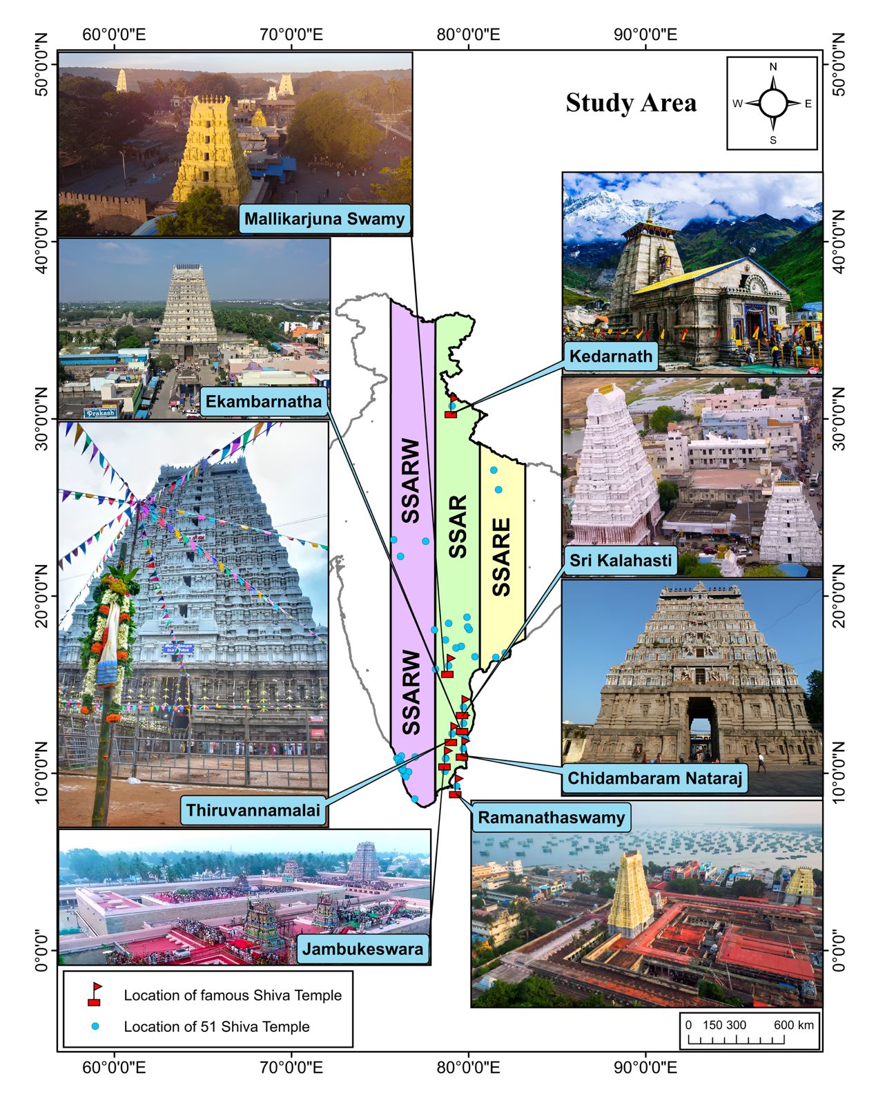 ह्यूमैनिटीज़ एंड सोशल साइंसेज कम्युनिकेशंस (नेचर पोर्टफोलियो) में प्रकाशित इस अध्ययन के अनुसार, केदारनाथ (उत्तराखंड) से लेकर रामेश्वरम (तमिलनाडु) तक ये मंदिर 79° पूर्वी देशांतर रेखा के आसपास स्थित शिव शक्ति अक्ष रेखा (SSAR) पर पाए गए। उपग्रह डेटा और पर्यावरणीय विश्लेषण से यह स्पष्ट हुआ कि यह संरेखण जल संसाधन उपलब्धता, कृषि उपज और नवीकरणीय ऊर्जा क्षमता से समृद्ध क्षेत्रों में है।