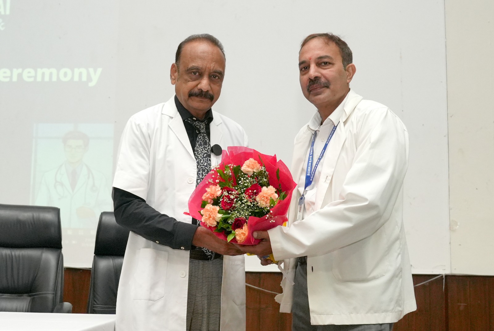 देहरादून। श्री गुरु राम राय राय इंस्टीट्यूट ऑफ मेडिकल एण्ड हैल्थ साइंसेज के नव आगुंतक (फ्रैशर) छात्र-छात्राओं की वाईट कोट सैरेमनी व चरक शपथ सम्पन्न हुई। एसजीआरआरआईएमएण्ड एचएस के सभागार में एमबीबीएस-वर्ष 2025 बैच के नव आगुंतक (फ्रैशर) छात्र-छात्राओं की वाईट कोट सैरेमनी व चरक शपथ श्री गुरु राम राय विश्वविद्यालय के वाईस चान्सलर इन्चार्ज एवं माननीय प्रेसिडे़ंट के सलाहकार प्रो.डॉ. प्रथप्पन के पिल्लई, एचजीआरआरआईएमएण्डएचएस के निदेशक डॉ. मनोज कुमार गुप्ता, प्राचार्य डॉ. अशोक नायक व श्री महंत इन्दिरेश अस्पताल के मुख्य चिकित्साधीक्षक डॉ. कर्नल अनिल मलिक द्वारा सम्पन्न करवाई गई। कार्यक्रम का शुभारंभ मुख्य अतिथि श्री गुरु राम राय विश्वविद्यालय के वाईस चान्सलर इन्चार्ज एवं माननीय प्रेसिडे़ंट के सलाहकार प्रो.डॉ. प्रथप्पन के पिल्लई, निदेशक डॉ. मनोज कुमार गुप्ता, प्राचार्य डॉ. अशोक नायक व श्री महंत इन्दिरेश अस्पताल के मुख्य चिकित्साधीक्षक डॉ. कर्नल अनिल मलिक द्वारा दीप प्रज्जवलित कर किया गया।